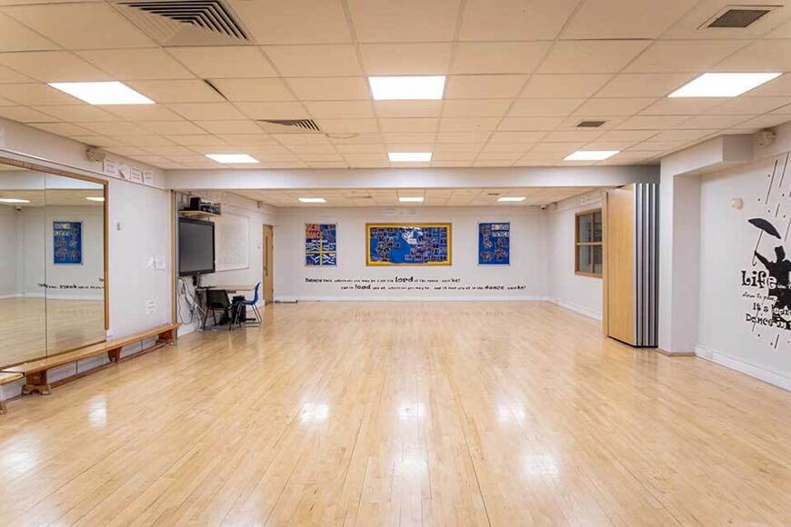 - Dance Studio – Mirrored, dividable space ideal for dance classes, rehearsals, and performing arts.